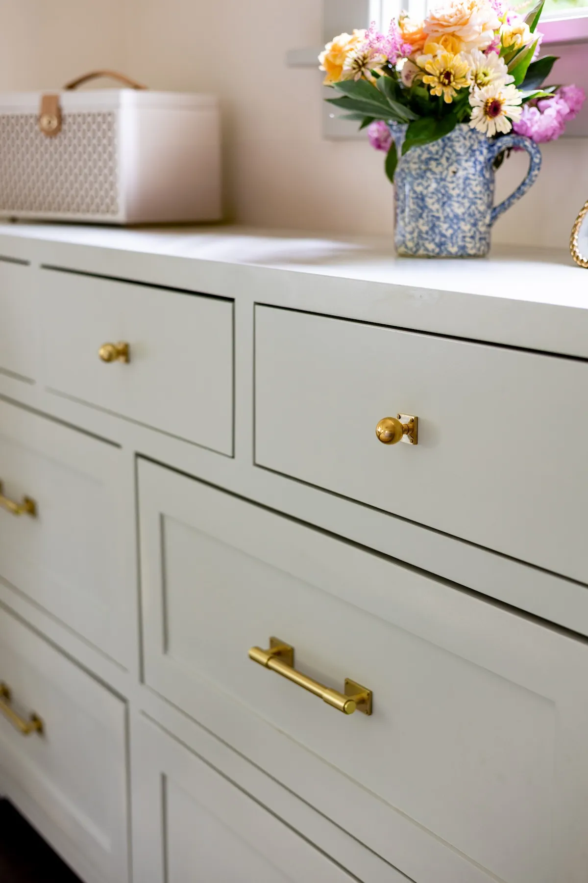 One funny detail—install was nearly done when I realized I completely forgot about hardware. Classic. So I dashed to Rejuvenation and picked out knobs and pulls that (thankfully) ended up being the perfect finishing touch. The only thing I’d tweak? I chose brushed brass, but the rest of our home has polished, which I love for how it patinas over time. Lesson learned!