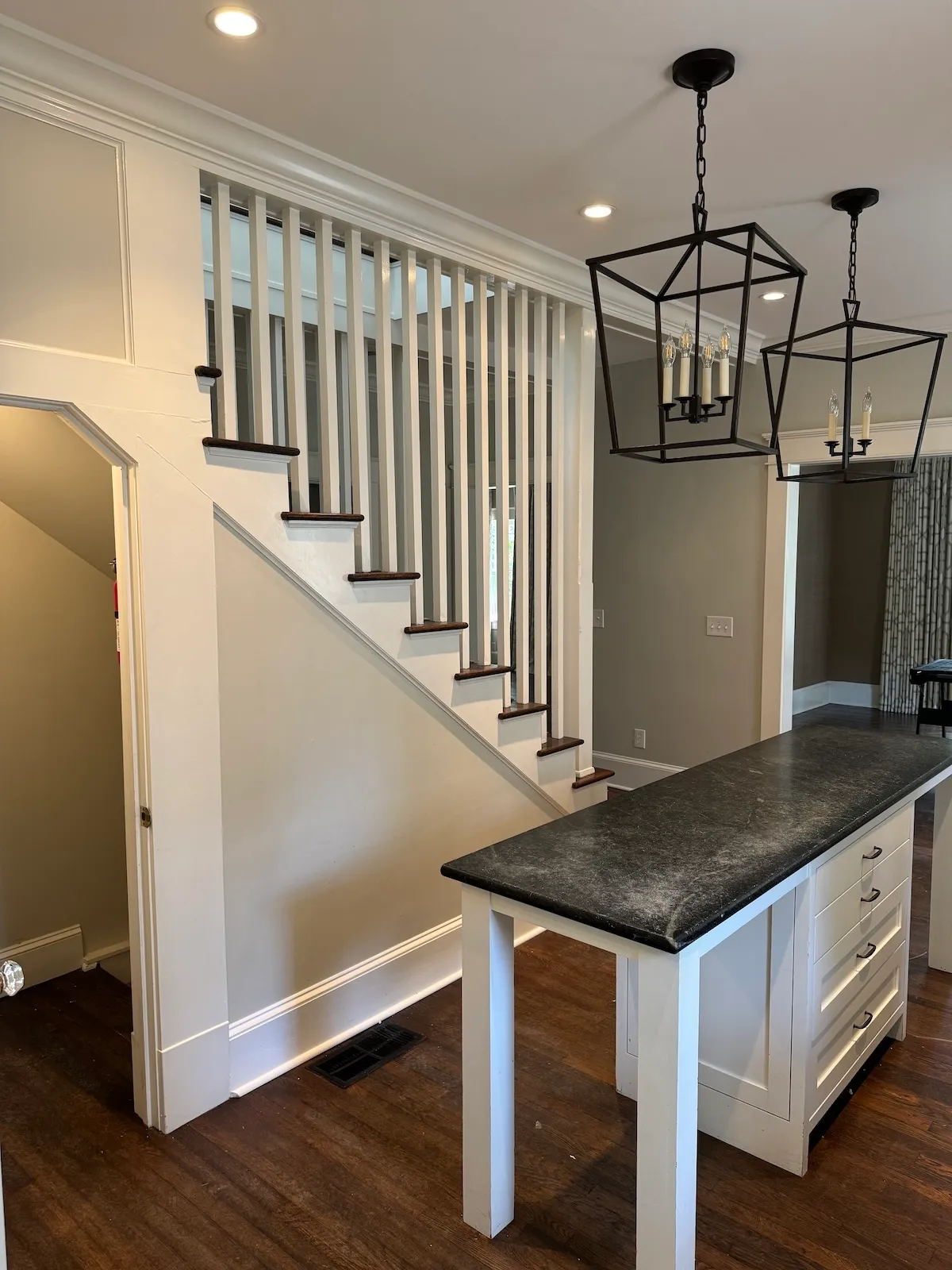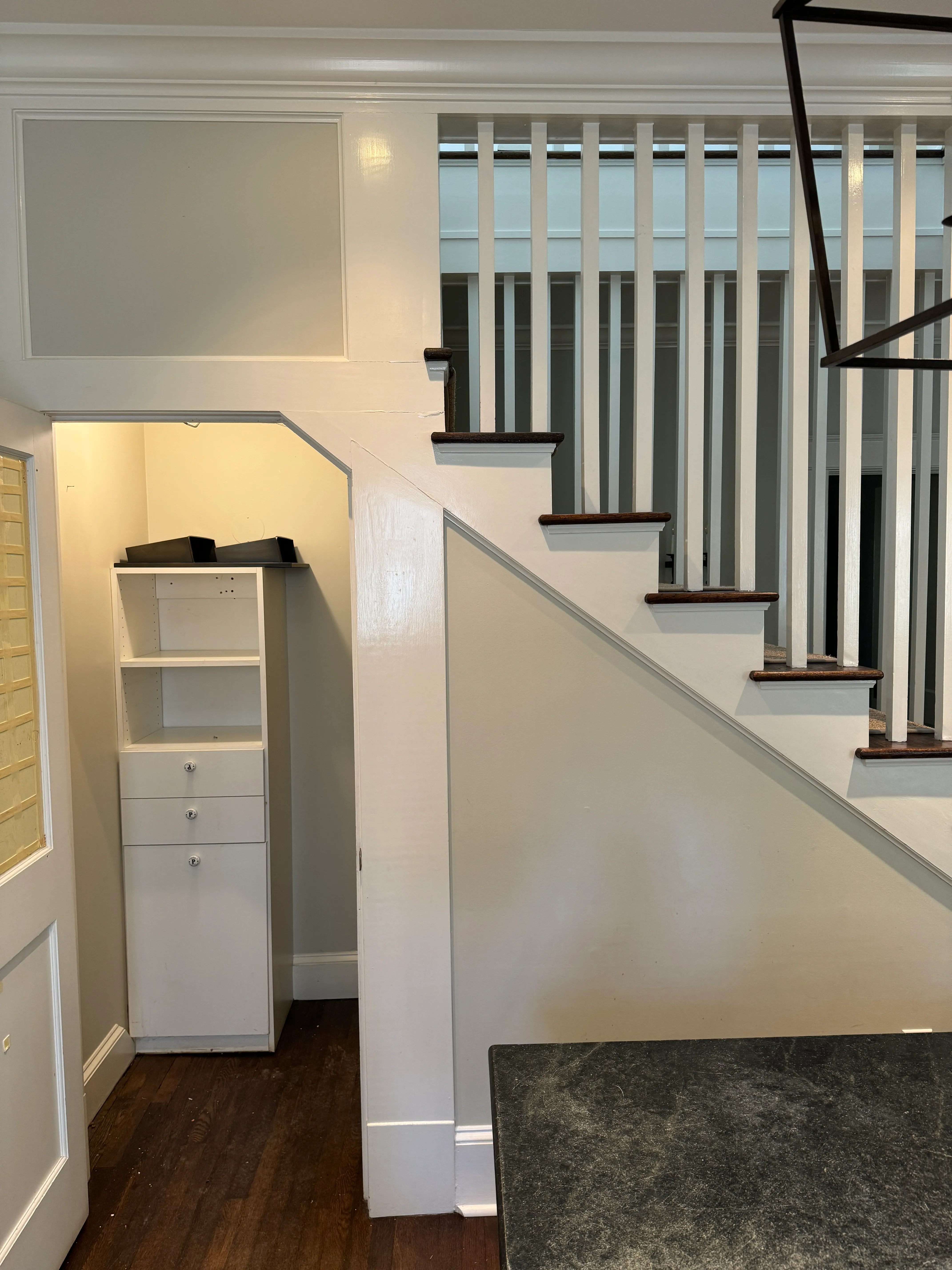 I honestly don’t know how the previous owners survived without all the storage we added. And in case you’re wondering—we moved the basement door to the other side of the staircase. Why it wasn’t there in the first place? That will always be a mystery.