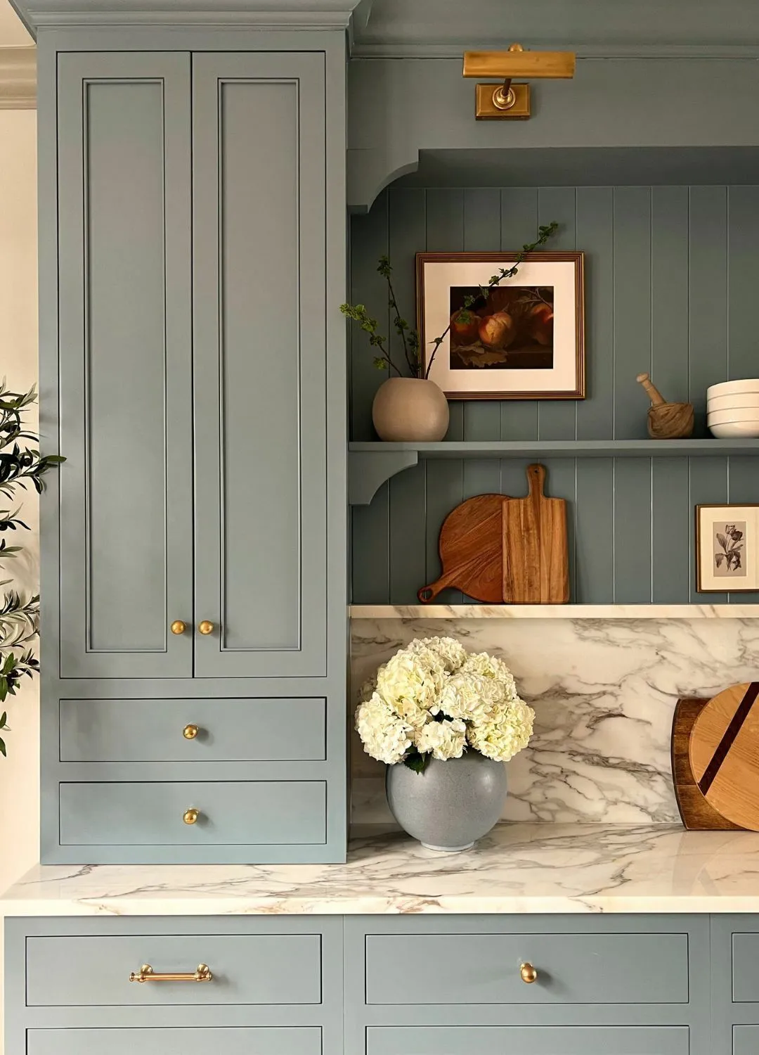 One idea I couldn’t shake was having cabinets that sat right on the counter—something that feels timeless and full of old-world charm. Then I stumbled on a few photos from the time and thought, Yes, this is it. That wall of cabinets became the answer.